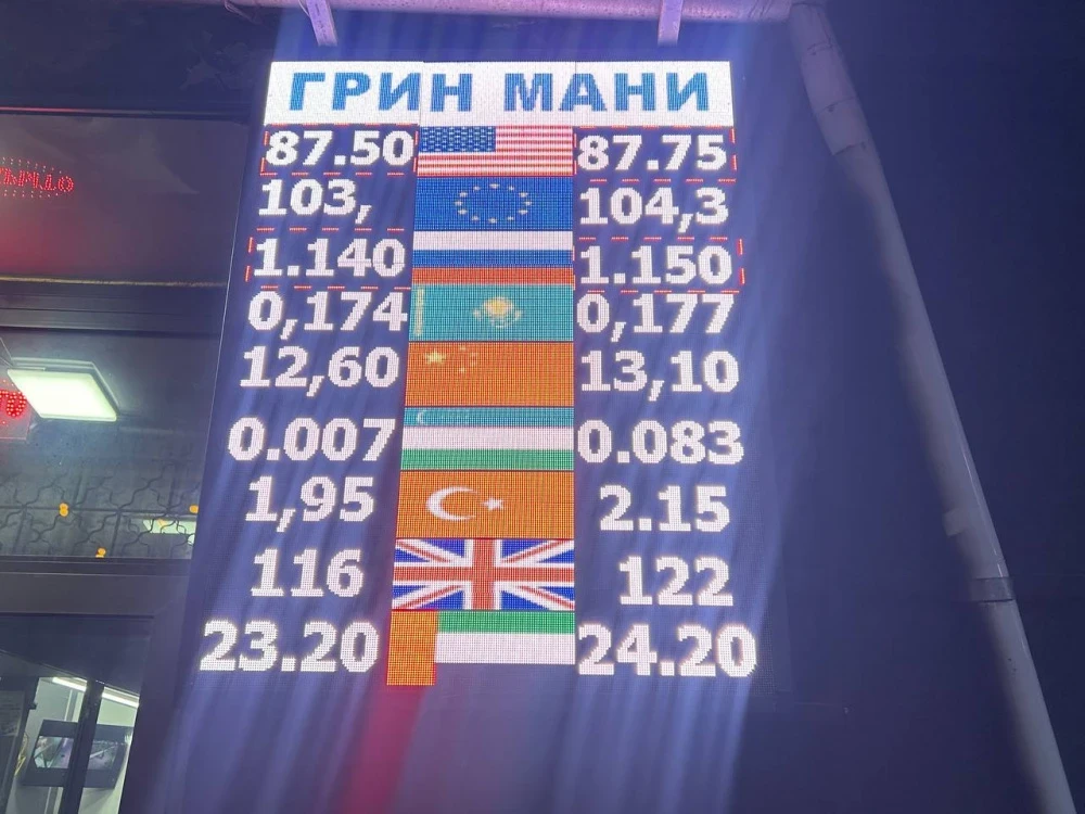 Курс доллара остался прежним: покупка осуществляется по 87,5 сома, а продажа — по 87,75.