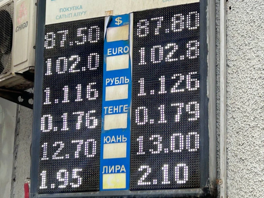 Также наблюдается падение курса рубля: его покупают по 1,11-1,12 сома, а продают за 1,12-1,13 сома.