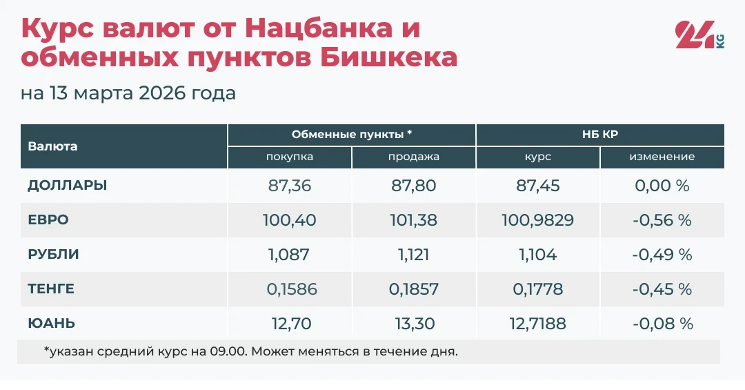 - Официальный курс НБ КР: 87,45 сома (без изменений).