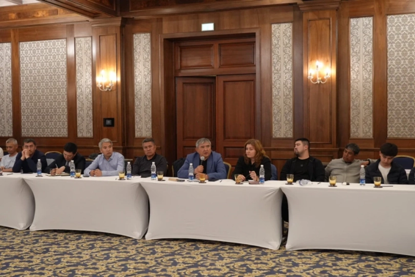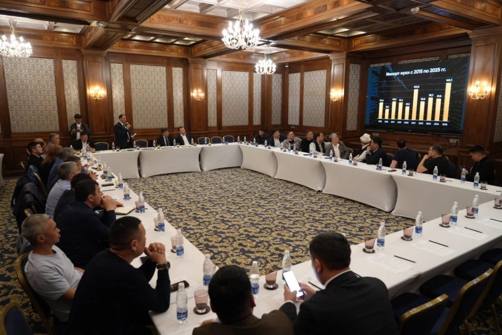 Среди присутствующих на собрании были замминистра водных ресурсов, сельского хозяйства и перерабатывающей промышленности Рустам Балтабаев, замгендиректора ГП "НК "Кыргыз темир жолу" Дастан Усубакунов, начальник управления анализа, отчетности и взаимодействия с ЕЭК Оксана Горянова, а также руководители мукомольных предприятий и представители бизнес-ассоциаций.
