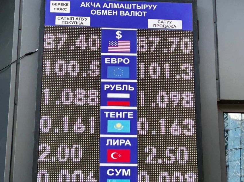 Курс доллара остался прежним: покупка - по 87,4 сома, продажа - по 87,8.