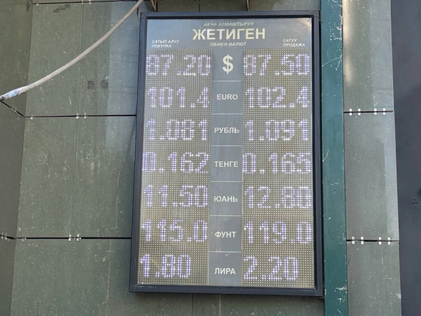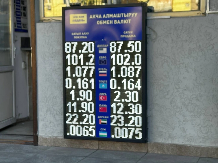 Курс доллара остался без изменений: покупка - 87,3 сома, продажа - 87,6.