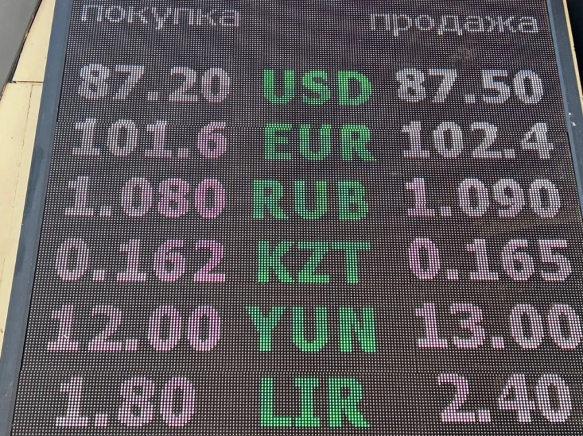 Доллар остался стабильным, его цена покупки составляет 87,2 сома, а продажи — 87,5.