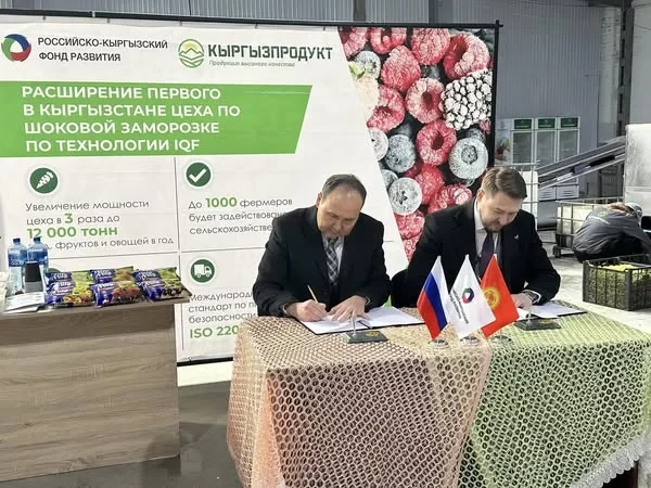 Новая инициатива по финансированию была подписана между «Кыргызцентропродукт» и Российско-Кыргызским фондом развития, она направлена на модернизацию и запуск второго производственного потока для шоковой заморозки овощей и фруктов.