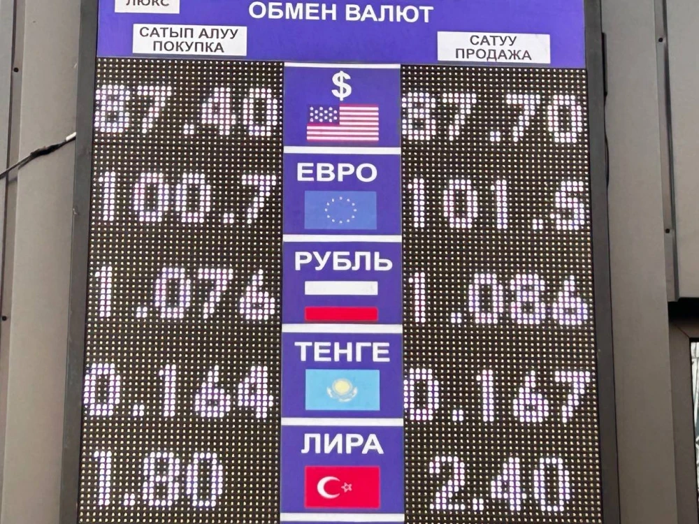 Доллар подорожал, его покупают по 87,4 сома, а продают по 87,7.