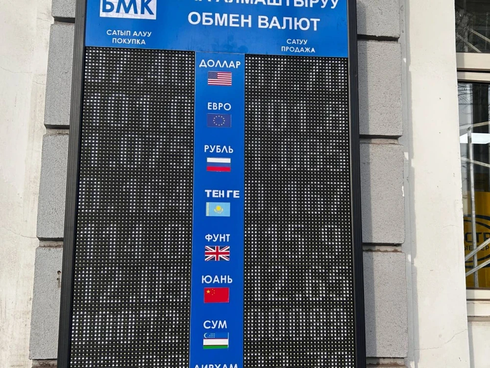 Цена рубля также уменьшилась, его покупают по 1,07 сома, а продают по 1,08.