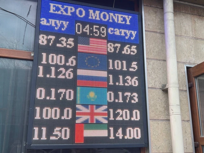 Стоимость доллара увеличилась: его покупка теперь составляет 87,35 сома, а продажа — 87,65.
