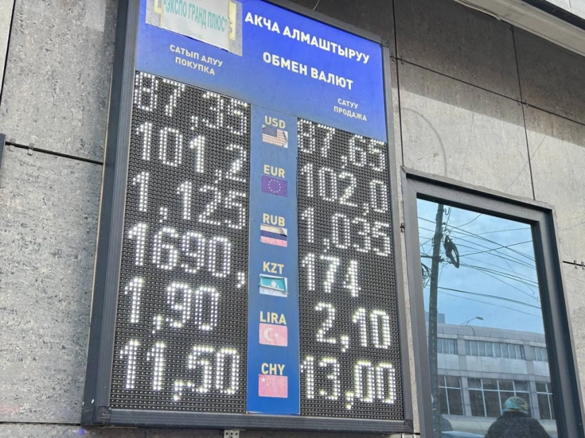 Цена рубля также возросла: его покупка стоит 1,12 сома, а продажа — 1,13.