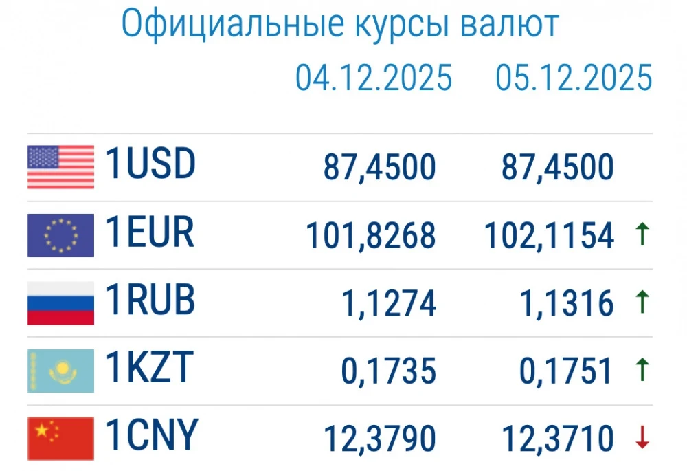 Курс доллара остался неизменным и составляет 87,45 сома, в то время как евро и рубль значительно укрепились.