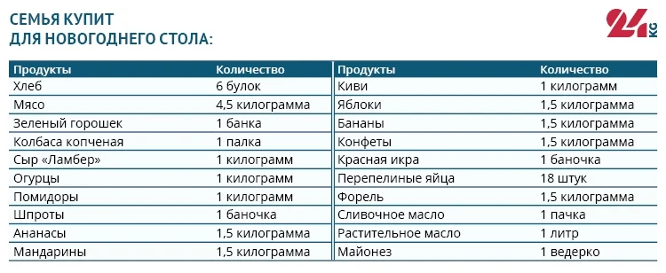 Поскольку семьи готовятся к праздникам заранее, мы предположили, что основные продукты (картофель, морковь, лук, крупы) уже есть в запасе. Мы не включили в корзину маринованные огурцы для оливье и шпроты для бутербродов, так как эти продукты часто накапливаются заранее.