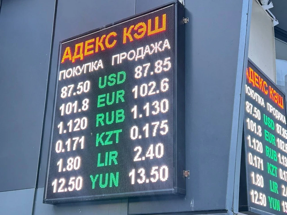 Евро, в свою очередь, немного подорожал. Его покупка осуществляется по цене 101,5-102 сома, а продажа — по 102,3-102,8.