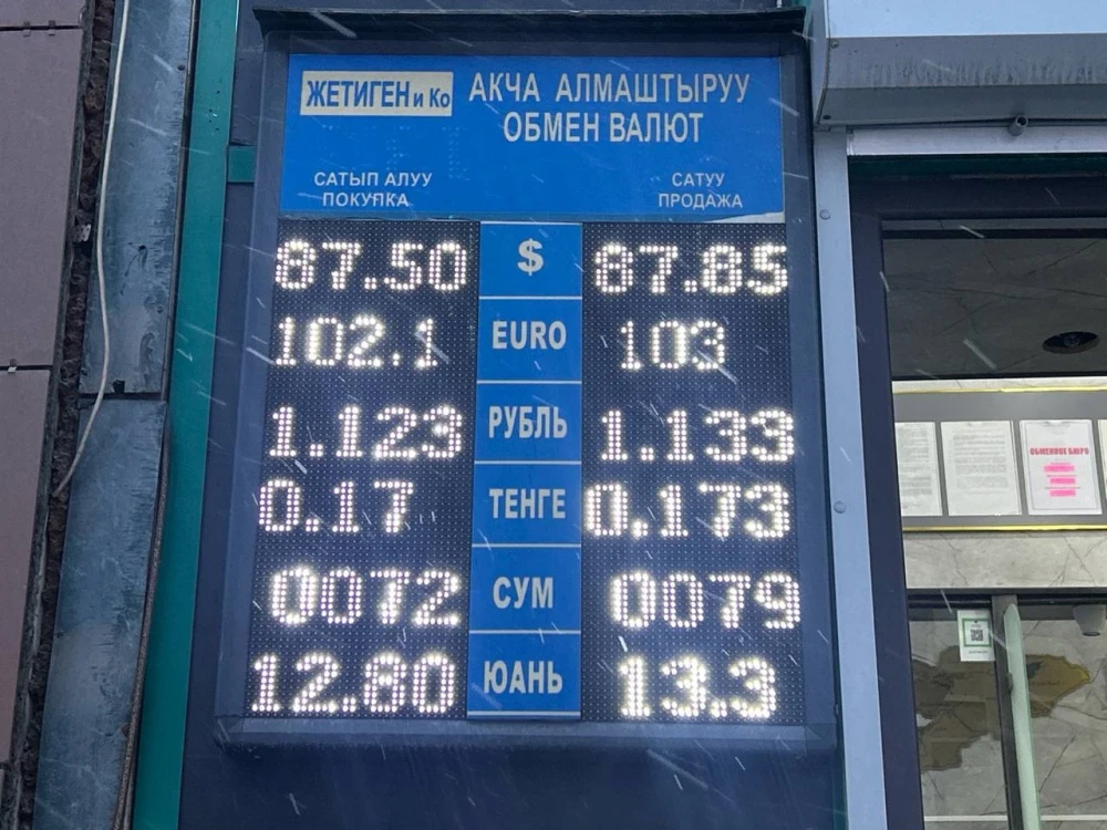 Курс доллара остался прежним: покупка по 87,5 сома, а продажа — по 87,85.