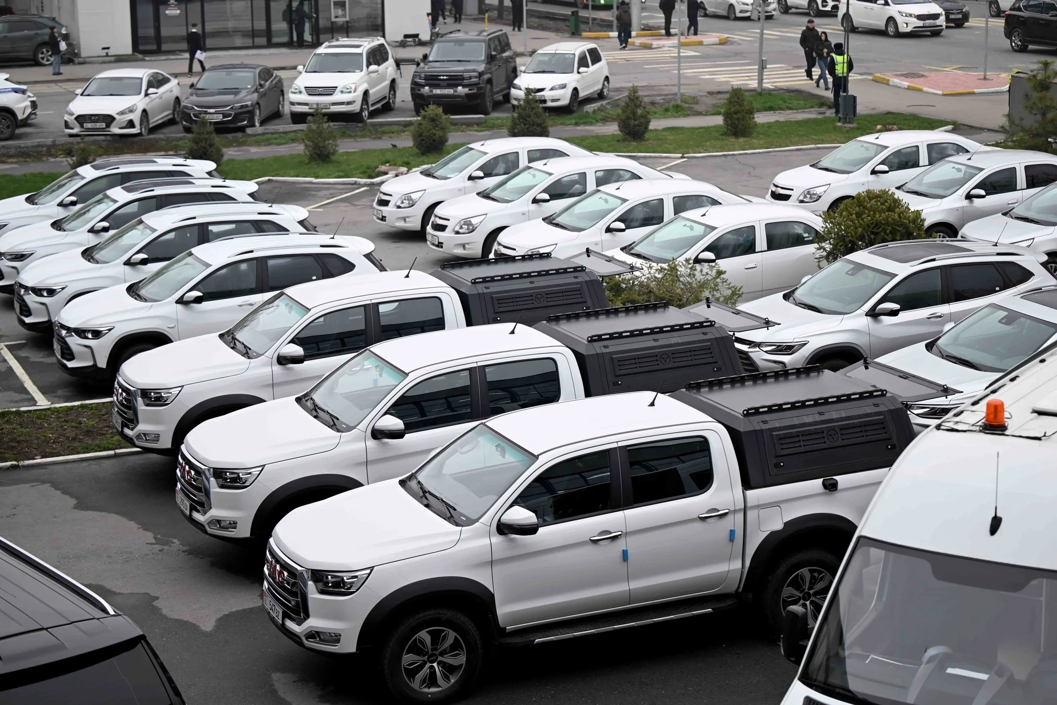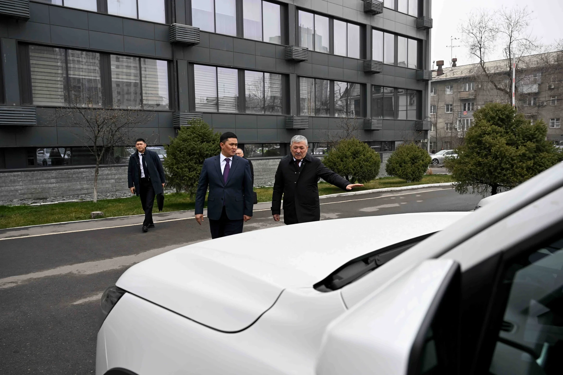 Также он осмотрел автотранспорт, предназначенный для подразделений министерства, а также мобильные строительные лаборатории, расположенные перед зданием ведомства.