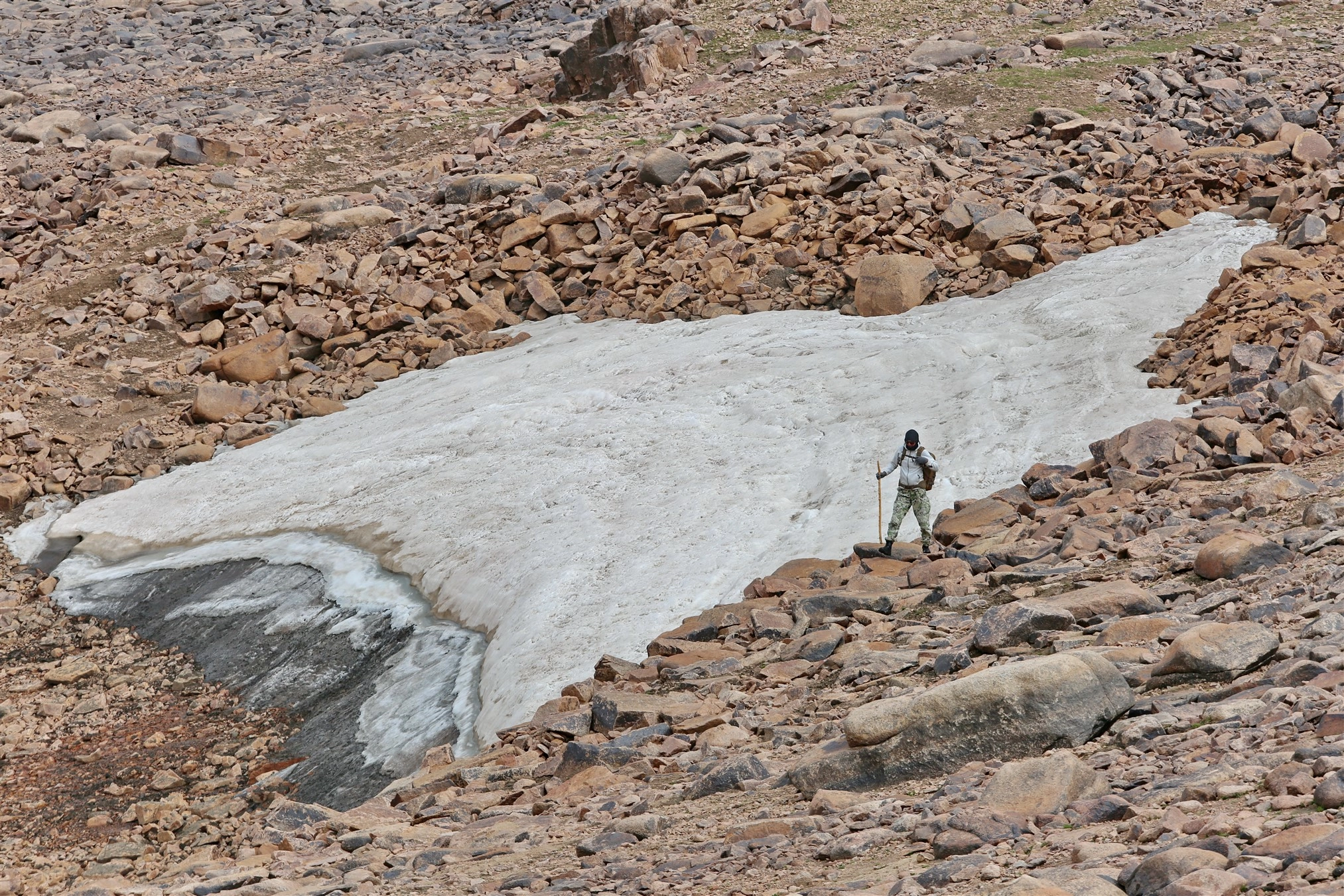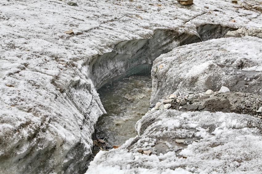 Абляция снежного покрова началась уже в конце мая, а к 20 июня ледник полностью перешёл в фазу интенсивного таяния льда. Данный сдвиг связан с повышением весенних температур воздуха. «Если июль и август окажутся жаркими, это приведёт к усиленному формированию талых вод, развитию трещин и, как следствие, к ускоренной потере ледниковой массы», - поясняет она. Результаты снегосъёмки свидетельствуют о устойчиво отрицательном масс-балансе: ледник ежегодно теряет больше воды, чем получает в виде накопления. С 1960-х годов ледник Адыгене отступил более чем на 900 метров, что соответствует среднему темпу деградации порядка 13-15 метров в год.