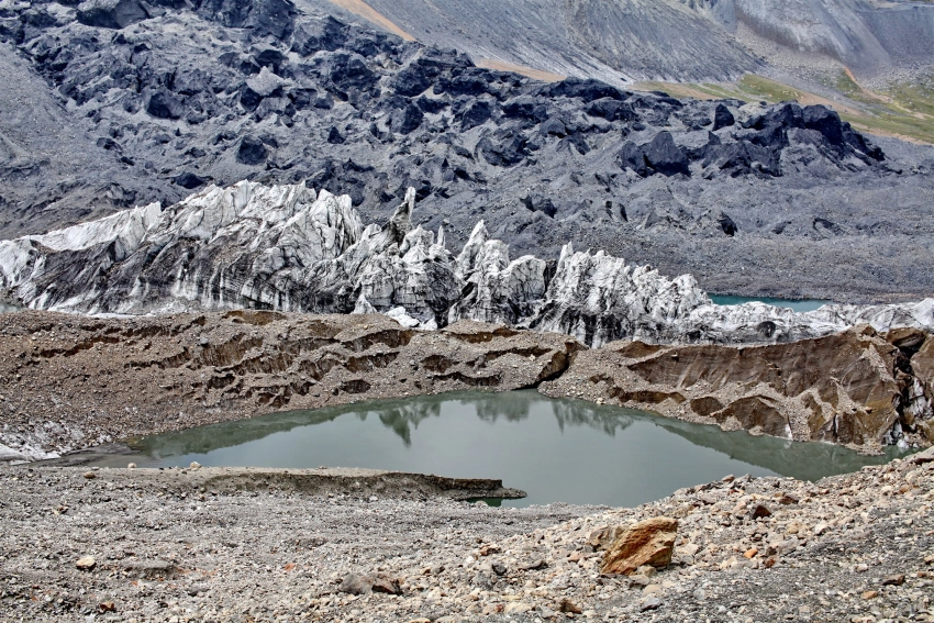 Её работа - это не только лед. Это ещё и вода, которая становится опасной. Ледниковые озёра - один из самых рискованных элементов текущих изменений. Когда ледник отступает, формируются перигляциальные озёра, которые могут резко увеличиваться в площади и глубине. Их прорывы приводят к селевым потокам, разрушениям и жертвам. Информация о состоянии таких озёр должна обновляться на постоянной основе. В ходе мониторинга мы зафиксировали повышение температуры воды в ледниковых озёрах -с 0,2 до 0,6 °C. Для высокогорных водоёмов это существенное изменение, свидетельствующее об ускоренном наполнении их котловин и росте риска прорывов и связанных с ними селевых процессов», -поясняет Гульбара Оморова. По её словам, ключевая проблема заключается не только в общем потеплении климата. «Даже при увеличении количества осадков это не компенсирует потери. При высоких температурах деградация ледника может ускоряться: ледяной массив фрагментируется, изменяется моренный покров, формируются новые водоёмы, которые ранее не существовали». Эти процессы существенно повышают уровень природных рисков в высокогорных районах.