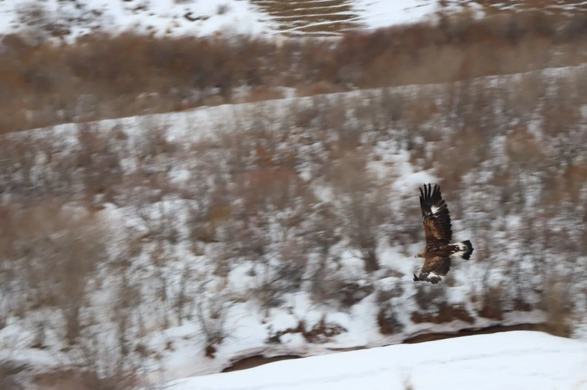 Изъятый беркут был возвращен в его естественную среду обитания.