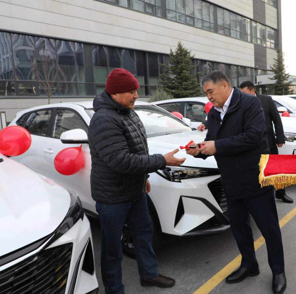Ташиев вручил ключи от машин руководителям медучреждений Нарынской области. Фото