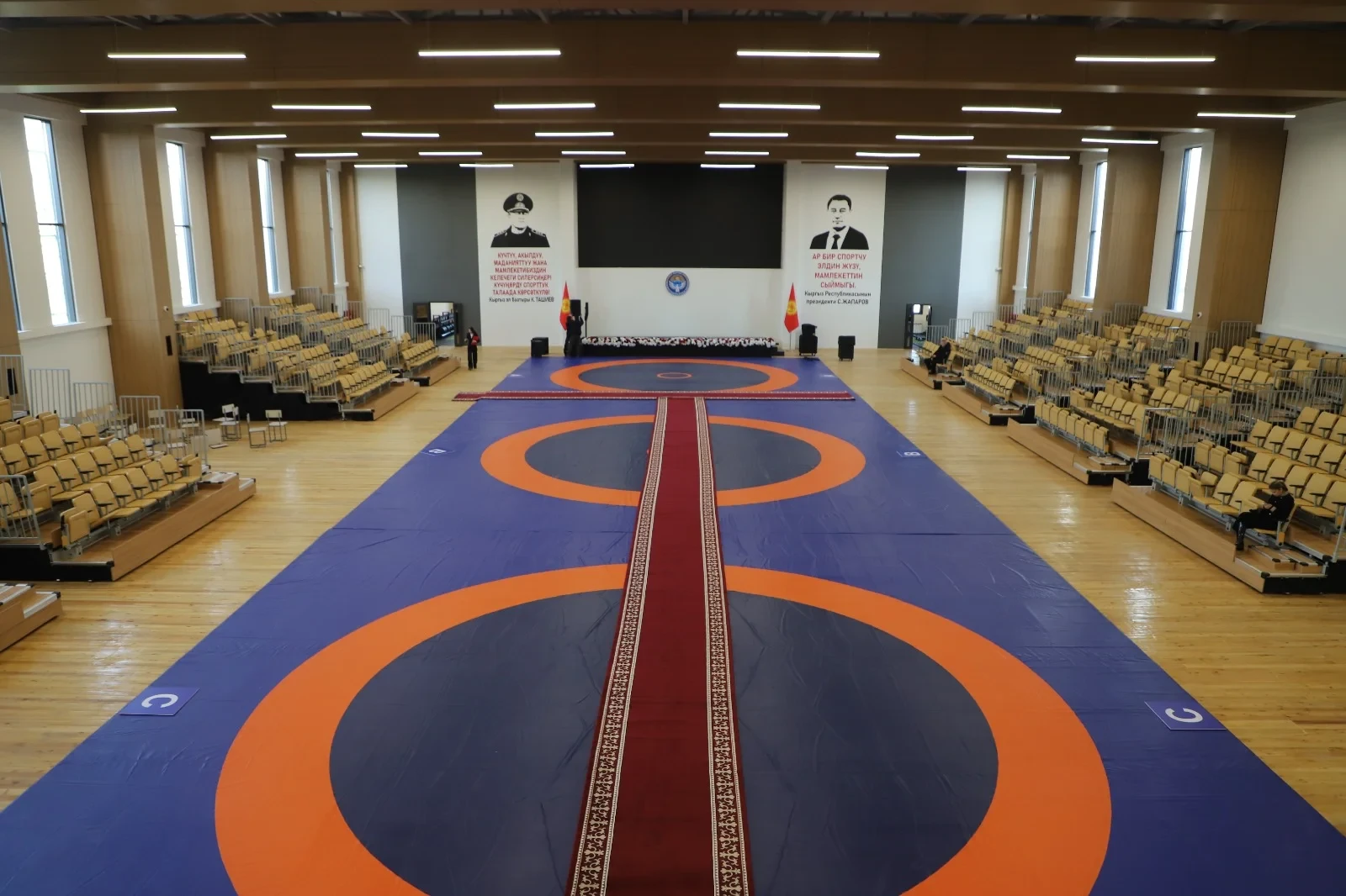 По данным пресс-службы ГКНБ, новый комплекс включает в себя зал для борьбы, зрительские трибуны, фудкорт, современные общежития, конференц-зал и дополнительные помещения для тренировок и совещаний.