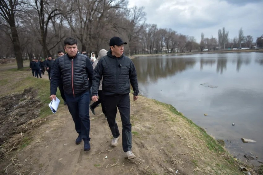 Первым пунктом инспекции стал рынок «Дордой», где в данный момент проводятся работы по благоустройству. Мэр осмотрел территорию вокруг озера и прилегающие дороги, где запланировано расширение новой дороги.