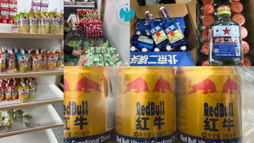 В одном из торговых объектов, принадлежащем ОсОО «Чунцин Хого», было найдено 160 штук алкогольной продукции китайского производства, а также 405 литров жидкости со спиртовым запахом и 124 единицы сахаросодержащих напитков.