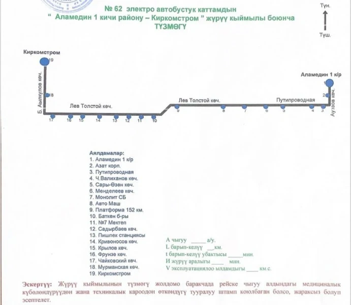 Маршрут пройдет по улицам Б. Алыкулова, Л. Толстого и Ауэзова.