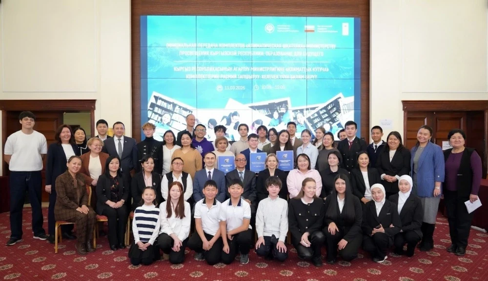 11 марта в Бишкеке прошло важное событие, на котором Программа развития ООН (ПРООН) передала Министерству просвещения Кыргызской Республики обновленные учебные комплекты под названием "Климатическая шкатулка". На мероприятии собрались представители государственных органов, дипломаты, учителя и школьники, которые продемонстрировали, как знания об экологии влияют на образовательный процесс.