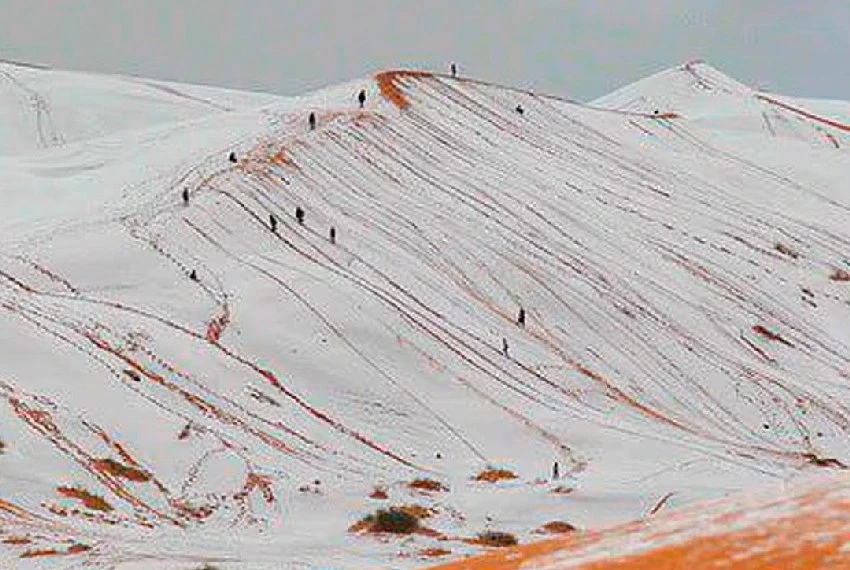 Оранжевые дюны в снегу: в пустыне Сахара ударили морозы