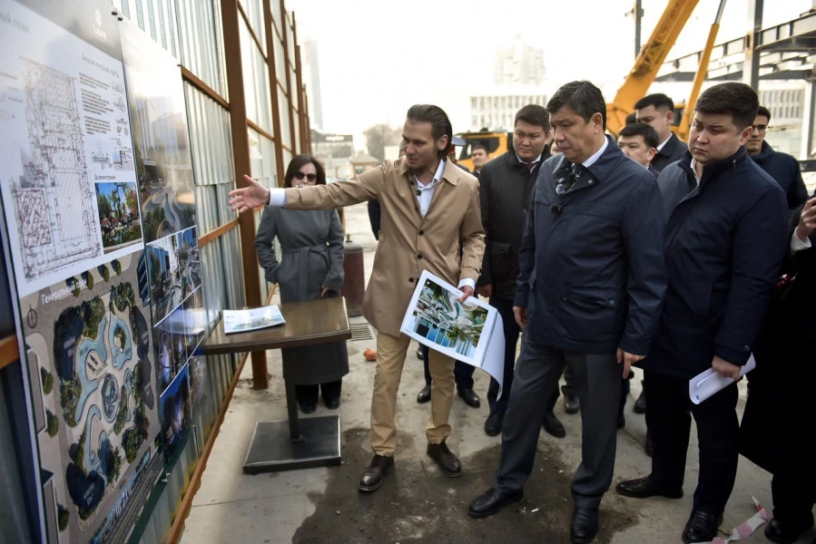 Кроме того, Джунушалиев вместе с представителями компании «Ташболот холдинг» проверил участок проекта Old Bishkek, где собственники решили демонтировать трехэтажное здание. На этой территории также планируется создание пешеходной и зеленой зон с учетом мнения местных жителей.