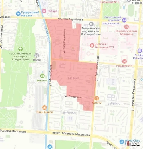 Отключение коснется территорий, ограниченных улицами И.Ахунбаева, Абая, Суеркулова, Байтик Баатыра, Саманчина, проспектом Масалиева и улицей Малдыбаева.