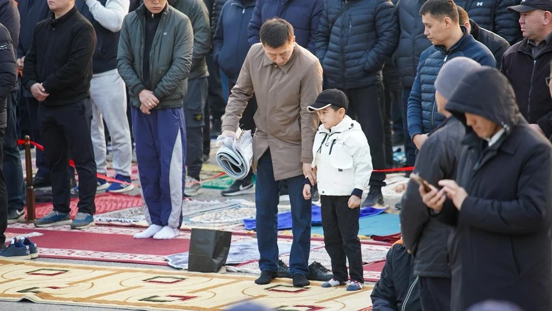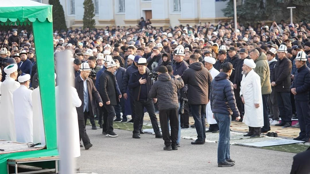 Среди пришедших был и президент Садыр Жапаров, который также принял участие в молитве вместе с остальными верующими.