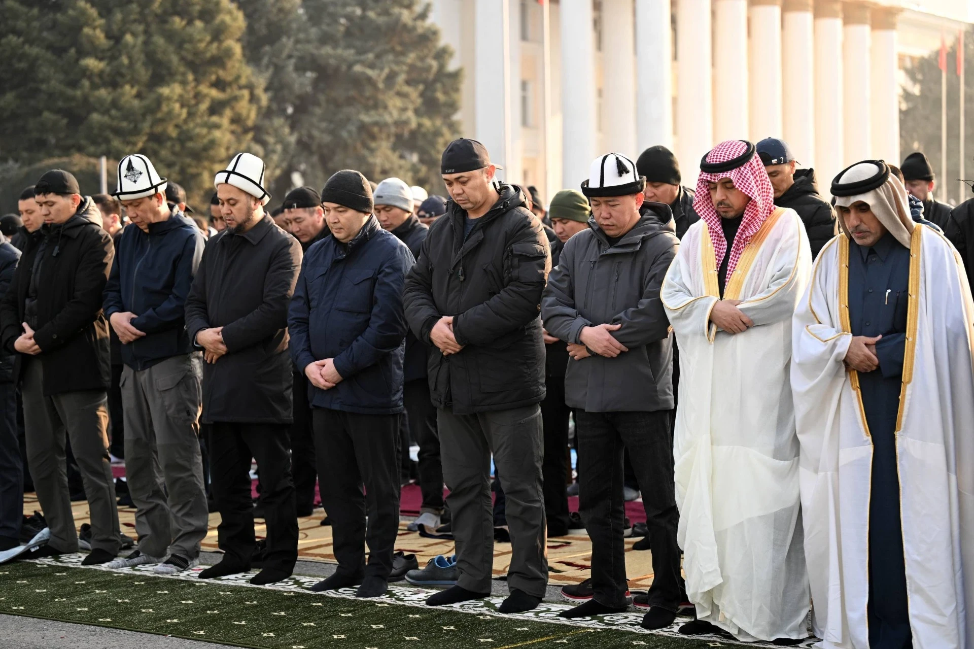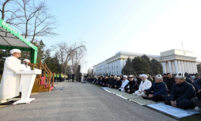 Сегодня на Старой площади в Бишкеке прошел Айт-намаз, в котором участвовал президент Садыр Жапаров, а также ряд высокопрофильных должностных лиц.