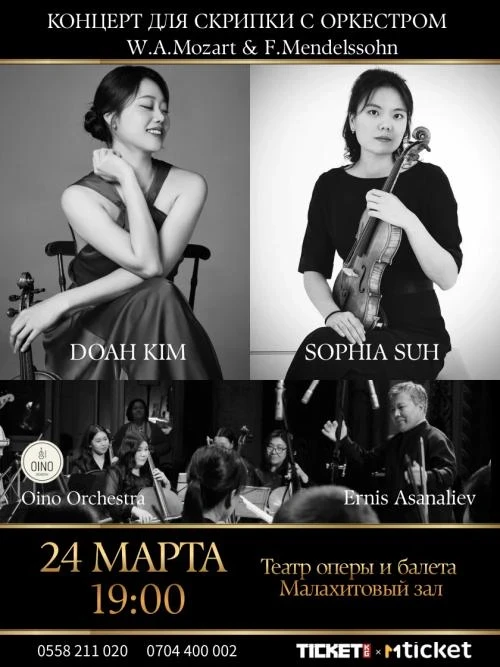 Скрипачка Доа Ким, известная на международной арене, впервые выступит в Бишкеке. В концерте также сыграют Софья Су (Кыргызстан – Германия) и оркестр «Ойно» под управлением Эрниса Асаналиева, народного артиста Кыргызской Республики.