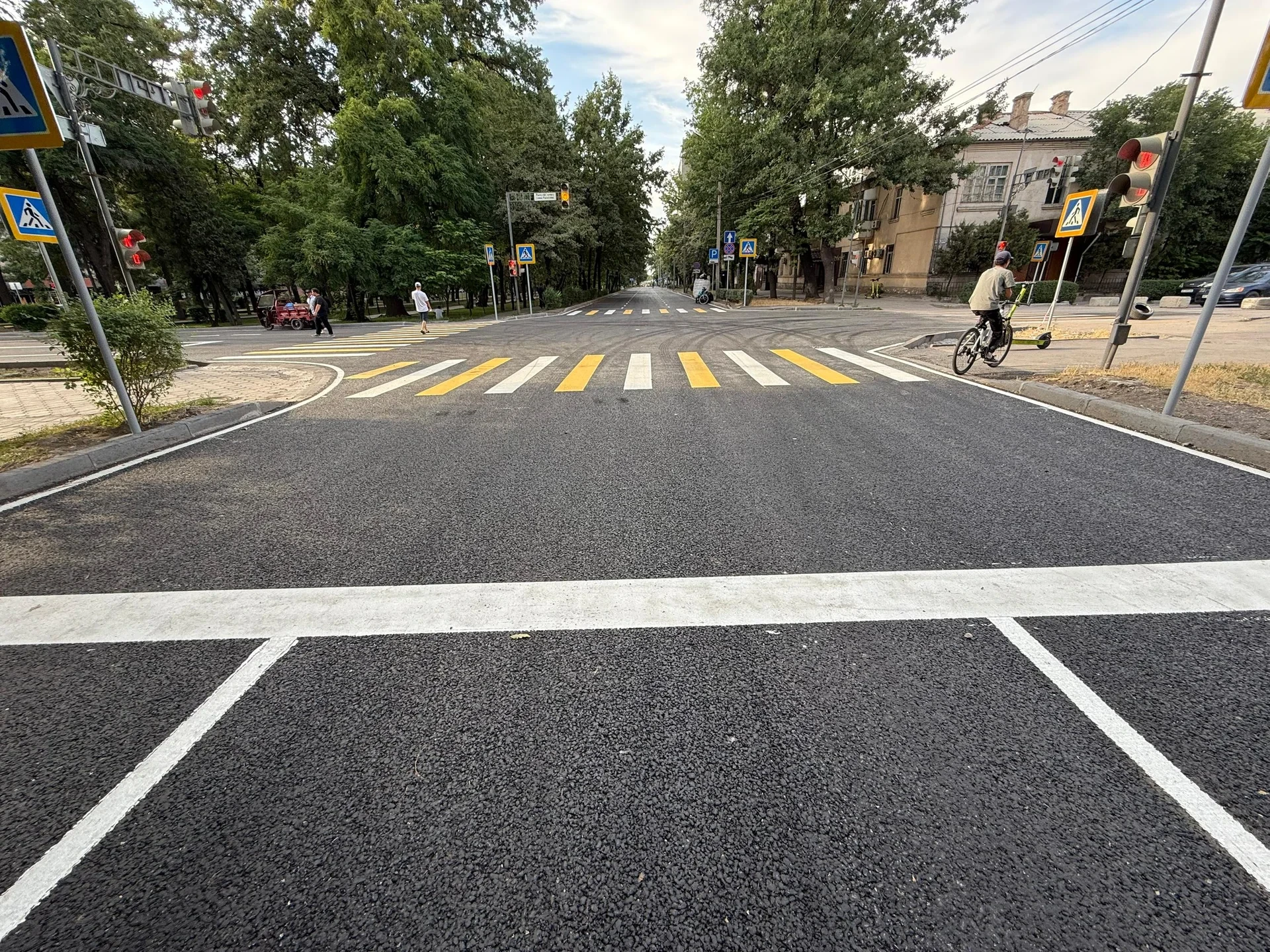 «Мы проводили совместные работы с «Бишкектеплосетью» и «Бишкекводоканалом». Они меняли старые трубы, чтобы потом не вскрывать дорогу заново. Ждали, пока они завершат свою часть. Сейчас укладываем нижний слой асфальтобетона», — отметил Азамат Осмоналиев.Проспект Шабдан Батыра: Участок от улицы Лермонтова до 7 апреля (северная сторона) завершён на три недели раньше, чем планировалось. Движение уже открыто.