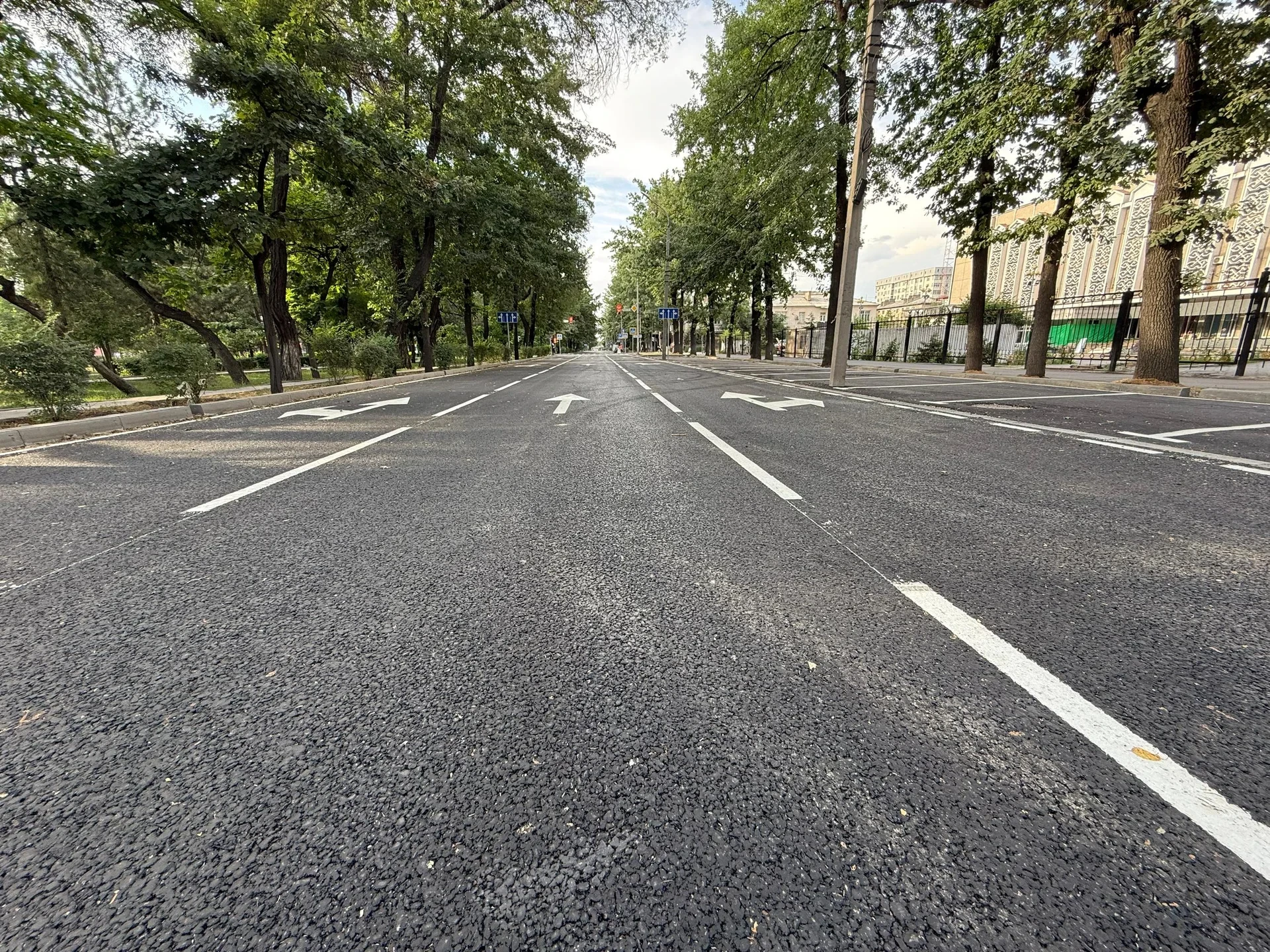 Западная сторона уже завершена (в мае). В настоящее время работы идут от проспекта Чуй до улицы Боконбаева, также начата установка дорожных знаков и разметка от улицы Московская до проспекта Чуй.