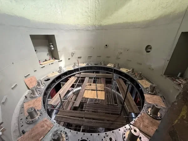 * По постоянному подъёмному механизму АРЗ ТВ выполнена установка фундамента механизма лебёдки, а также лазерная очистка пазов СУР ГА-3 (на верхнем бьефе).