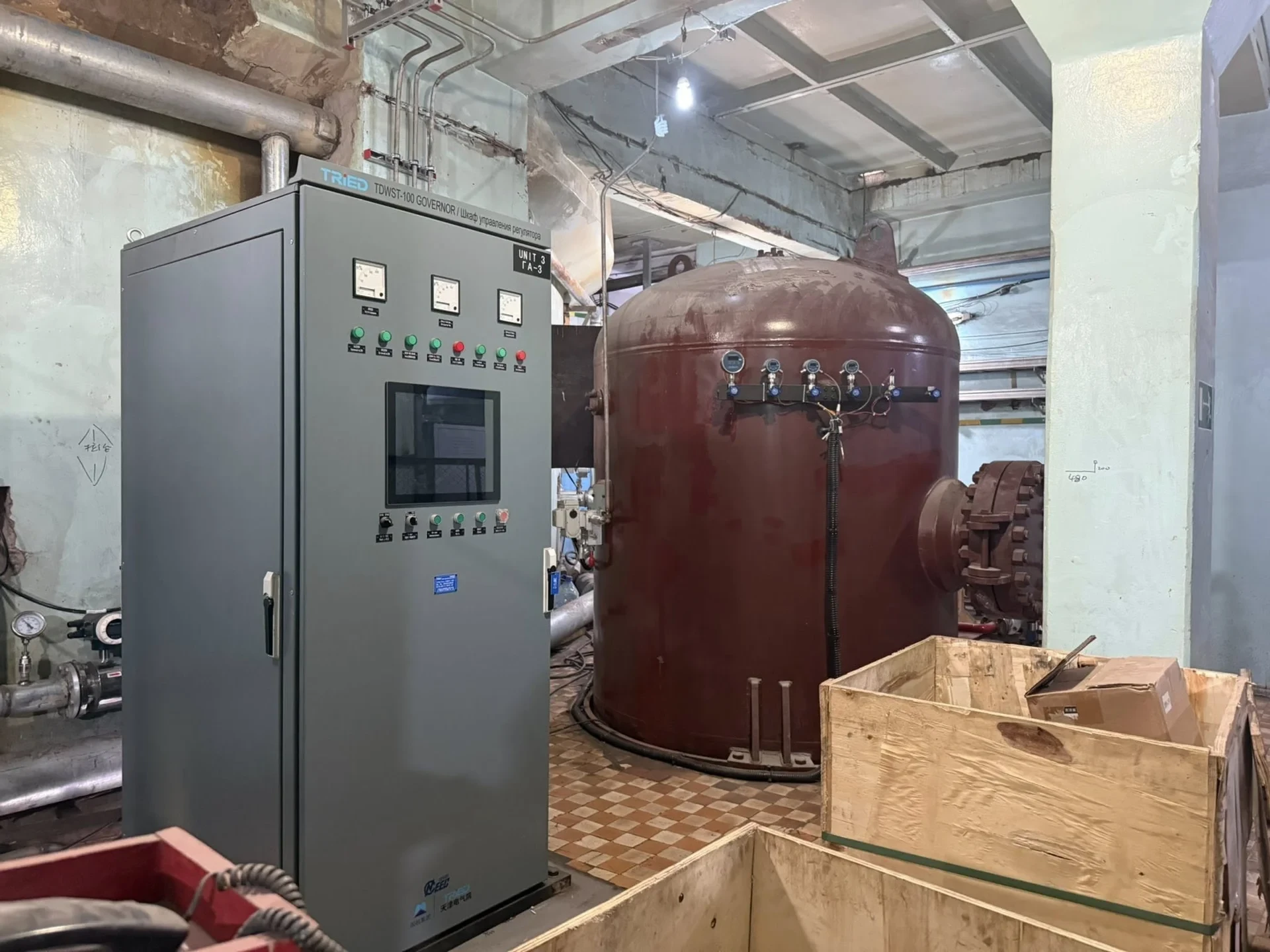 * Для гидроагрегата №3 осуществлены регулировка шкафов управления, прокладка контрольных кабелей, сборка рабочего колеса, монтаж трубопроводов системы регулирования и установка лопаток с центровкой оборудования.
