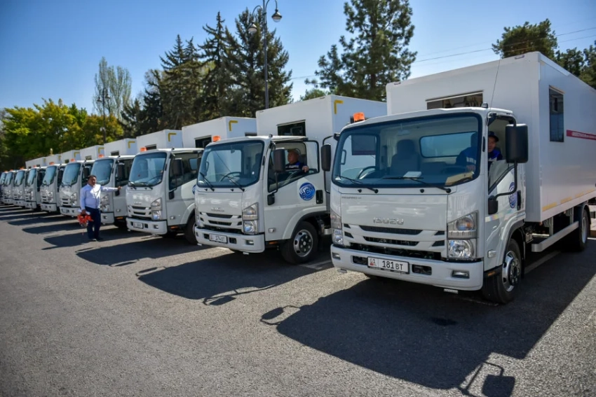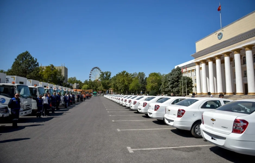 Среди получивших технику муниципальных предприятий — «Бишкекводоканал» (21 единица), «Бишкекасфальтсервис» (16 единиц), «Бишкегорлифт» (2 единицы), «Бишкекский городской транспорт» (6 единиц), Муниципальная инспекция (20 единиц) и Управление по контролю за землепользованием (10 единиц).