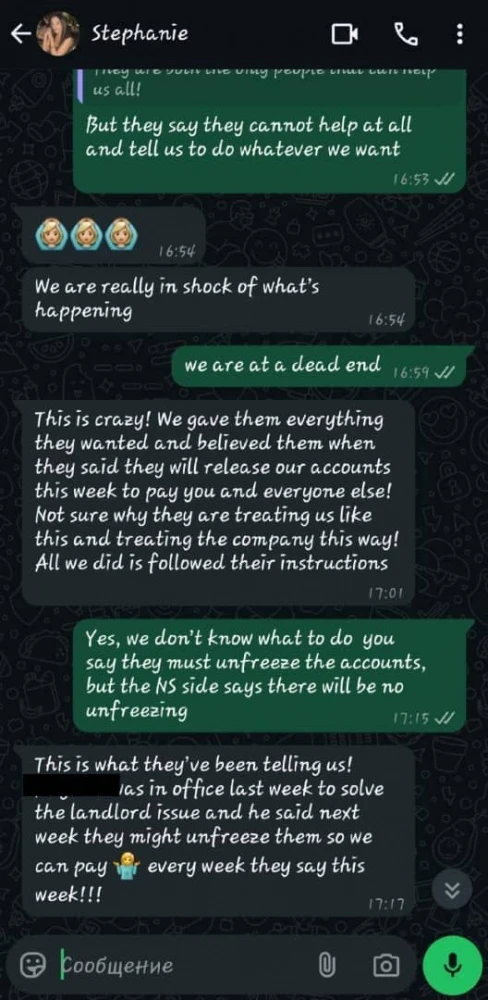 Организация начала свою деятельность 13 июня 2024 года. Перед началом работы сотрудники подписали соглашения о неразглашении информации.По словам работников, они были официально трудоустроены и получали зарплату на банковские карты без задержек до середины августа. Однако 18 августа 2025 года в 15:00 им сказали собрать вещи и не приходить на следующий день, обещая выплатить зарплату в сентябре.