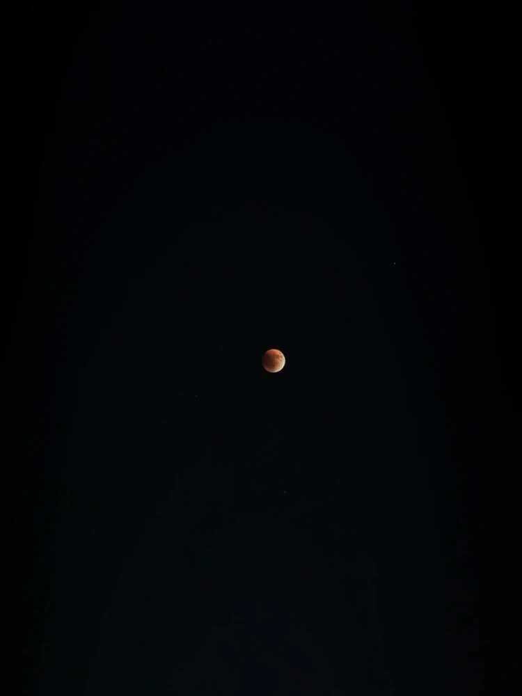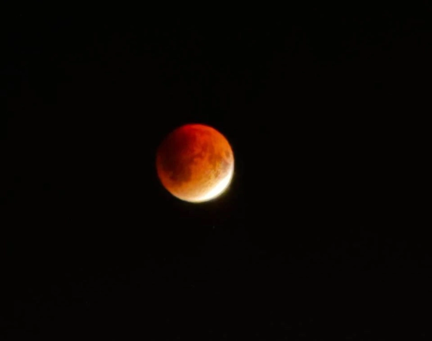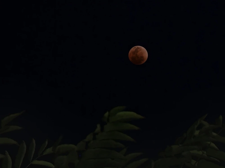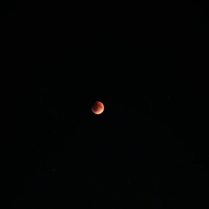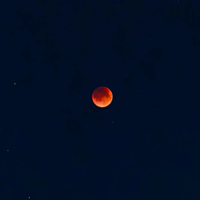 Тень Земли скрыла Луну, придавая ей необычный красноватый цвет, что стало результатом преломления солнечных лучей в атмосфере.