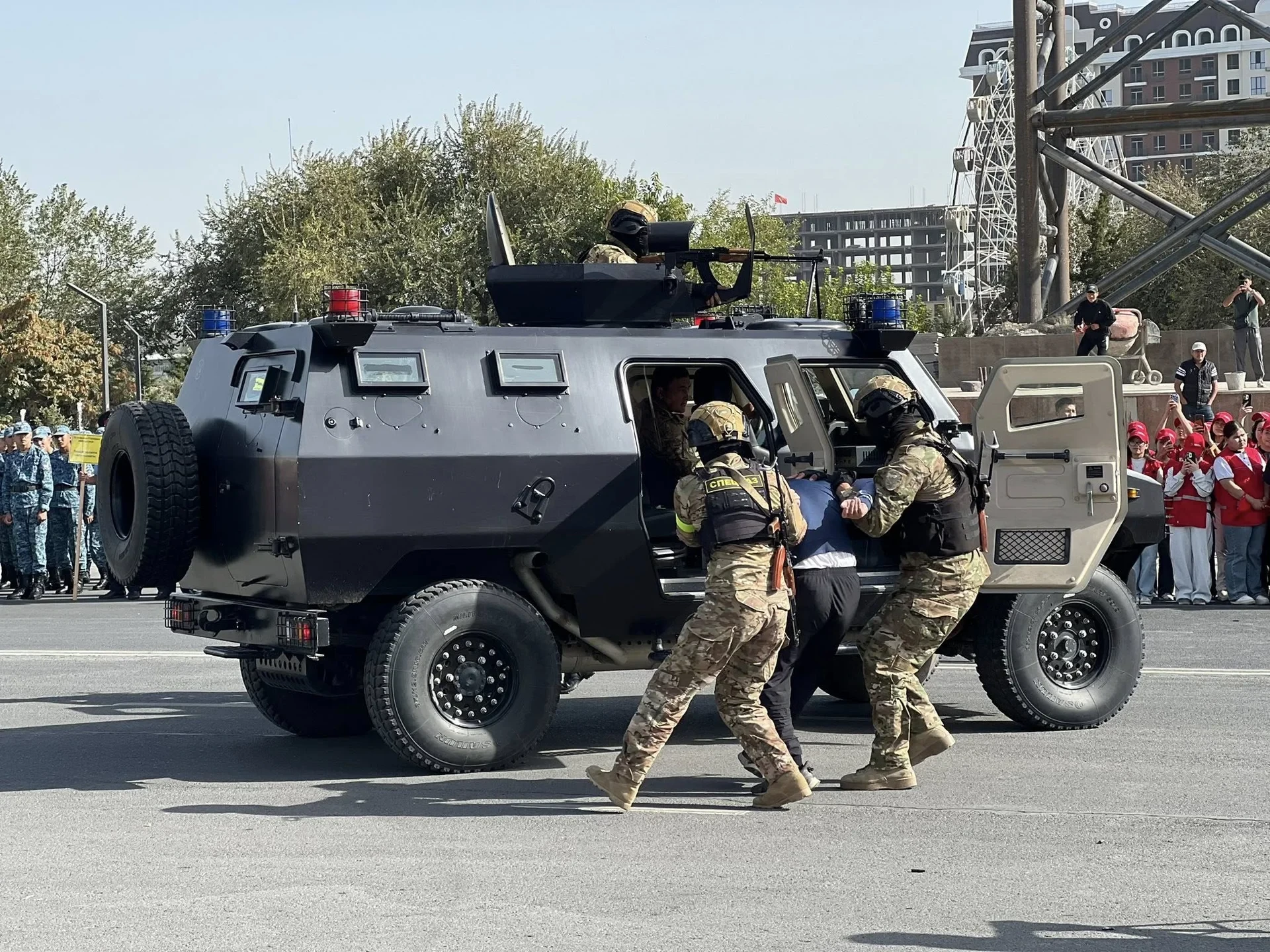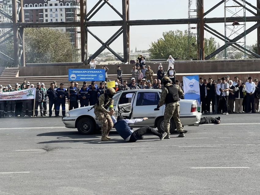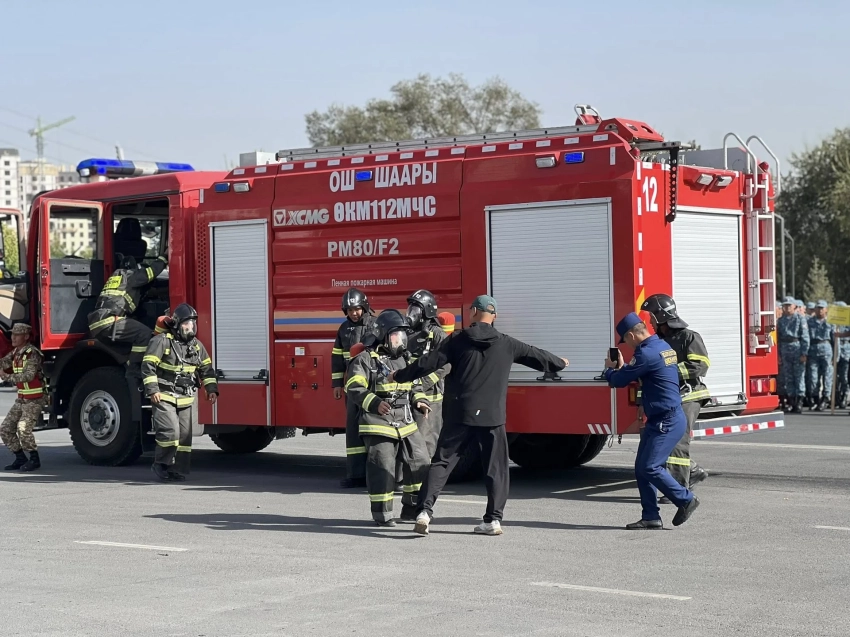 На главной площади Оша состоялись учения, приуроченные ко Дню снижения риска бедствий в Кыргызстане, который ежегодно отмечается 5 октября. Организатором мероприятия выступило городское управление Министерства чрезвычайных ситуаций КР, согласно информации от мэрии города.