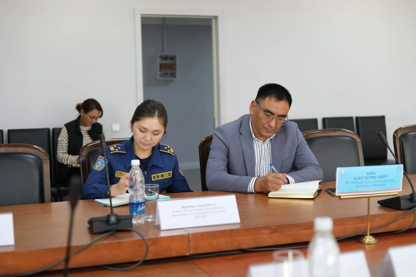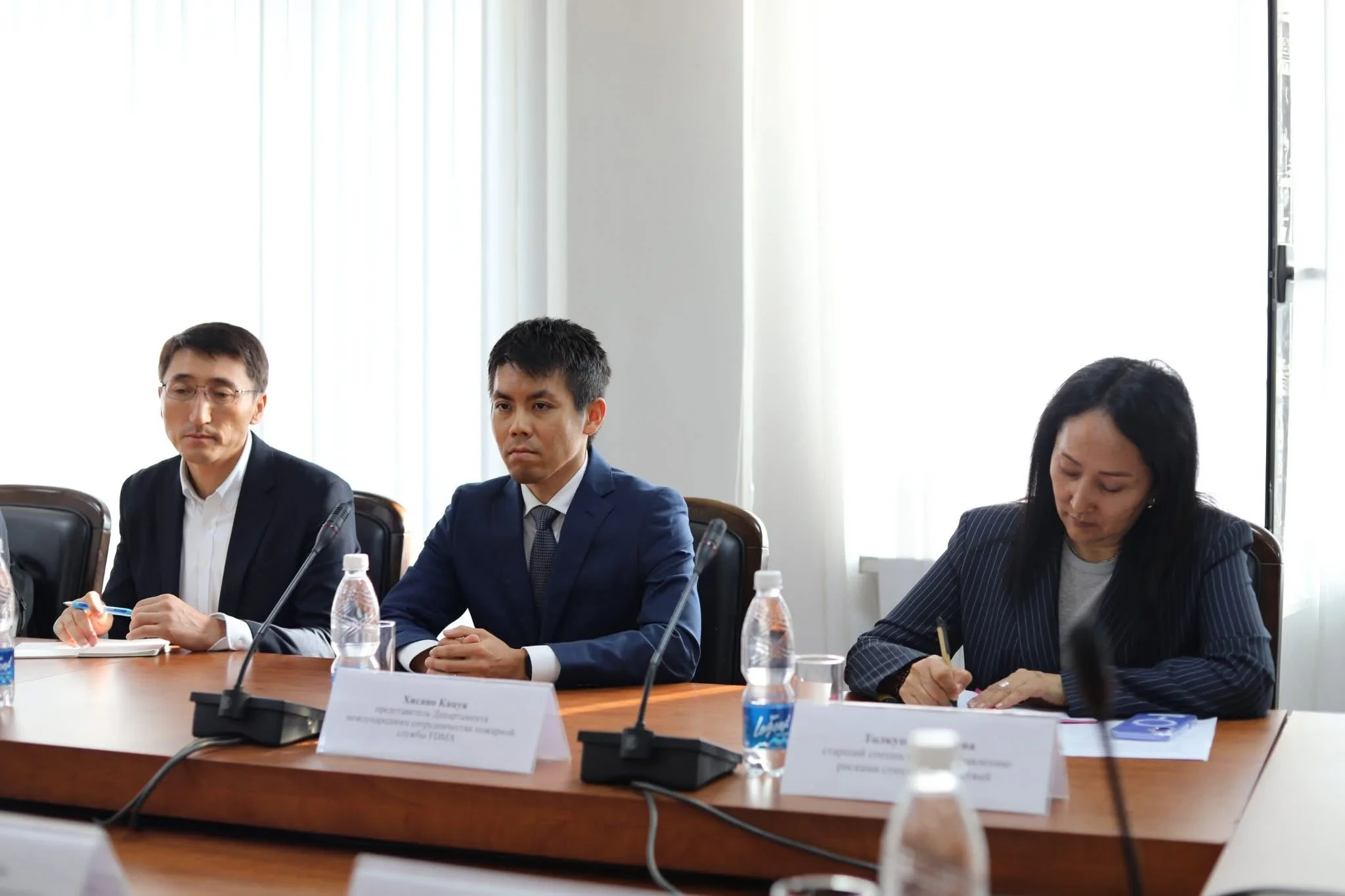 На мероприятии начальник Управления международного сотрудничества МЧС Канат Карыбай уулу встретился с представителями Всемирного банка и японского Агентства по управлению пожарами и ликвидации стихийных бедствий (FDMA).