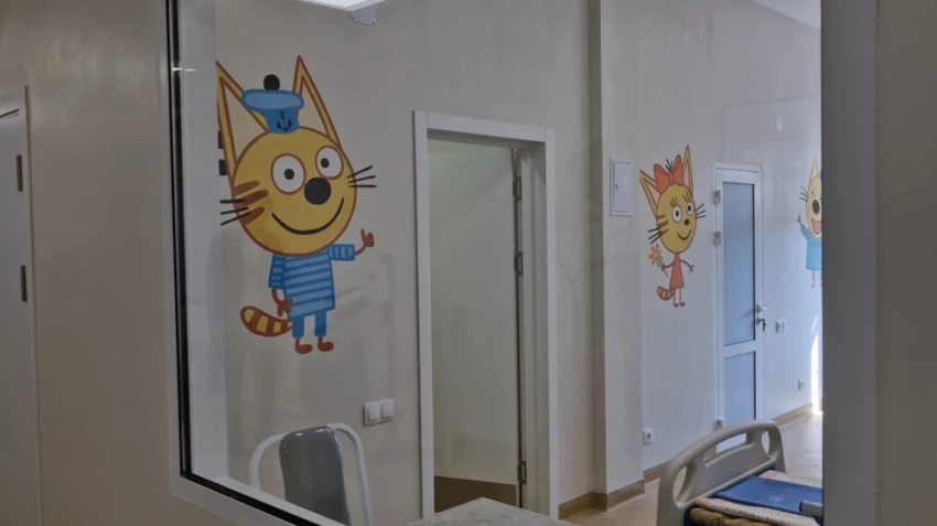 Общая площадь нового корпуса составляет 3 647 квадратных метров, и в нем расположены три детских отделения.
