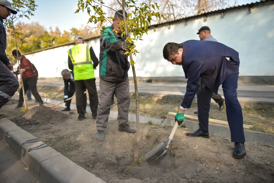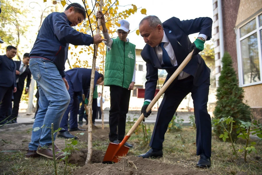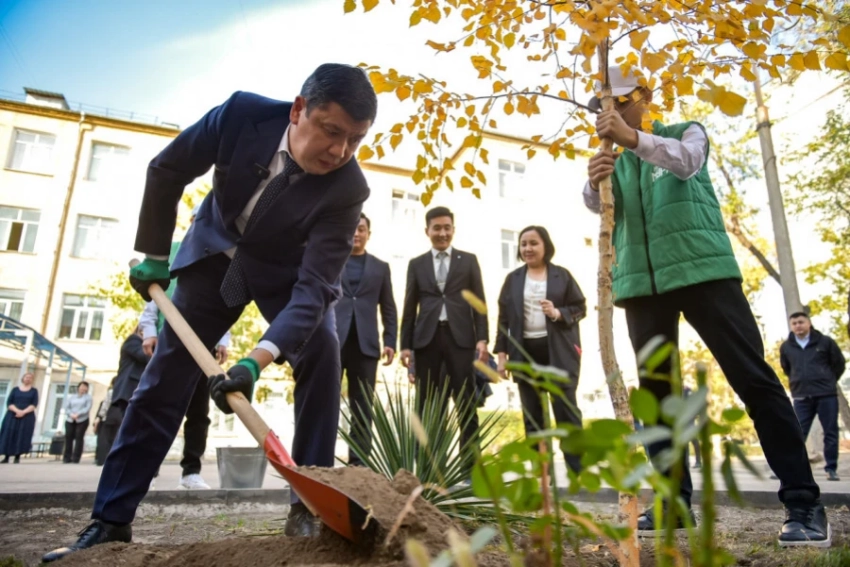 Мэр с главой Минприроды посадили саженцы возле бишкекской школы