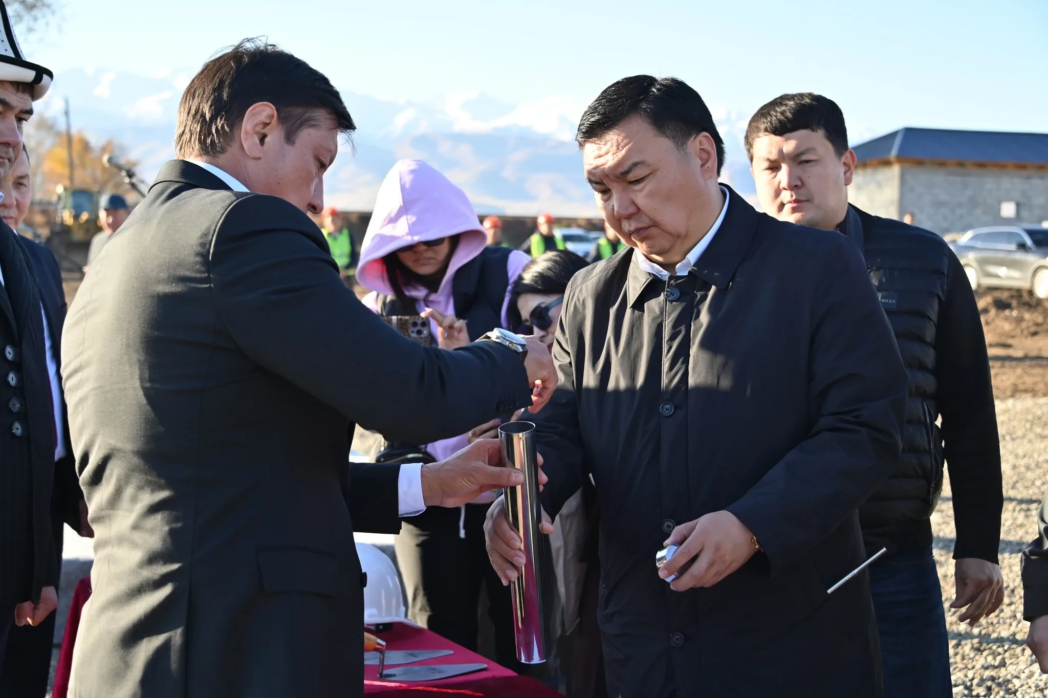 В церемонии закладки капсулы на месте будущего социального комплекса в селе Кожомкул Сокулукского района принял участие Курванбек Авазов, заместитель председателя ГКНБ КР.