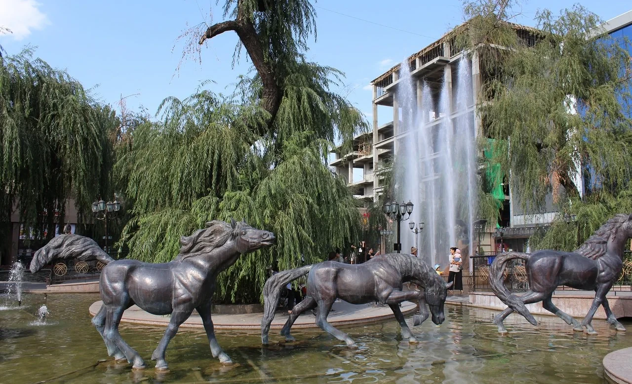Фонтанный комплекс перед ЦУМом «Айчурек», украшенный табуном бронзовых лошадей, был создан к 25-летию независимости Кыргызстана. Эти фонтаны с ивами были установлены в столице 49 лет назад и стали важной частью городской культуры. Множество жителей Бишкека и Фрунзе помнят это место как популярную локацию для встреч и дружеских посиделок.