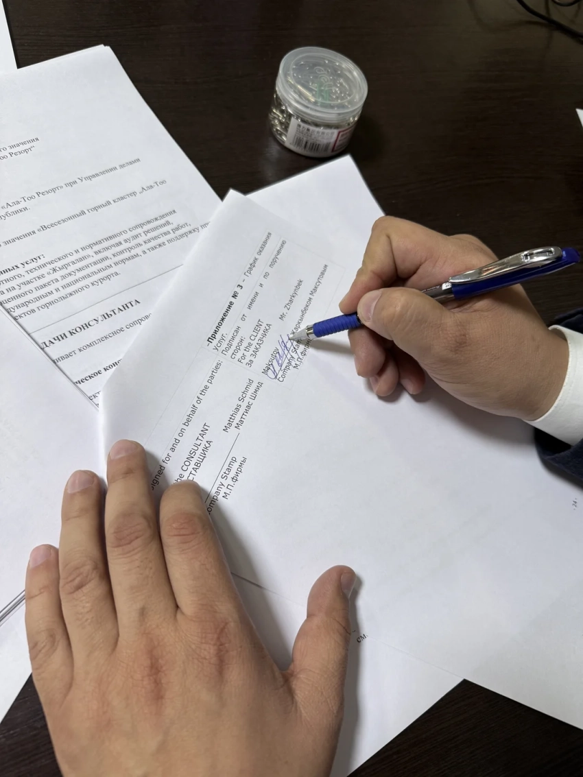 Директор «Ала-Тоо Резорт» Жаркынбек Максутов подписал соглашение с Маттиасом Шмидом, руководителем SkiMIS, обладающим более чем 20-летним опытом работы в сфере управления горнолыжными курортами в Альпах, Скандинавии, Новой Зеландии и Восточной Европе.