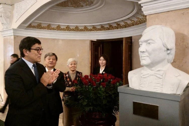 В фойе театра в честь юбилея был открыт бюст Булата Минжилкиева, созданный молодым скульптором Тамилой Маматовой.