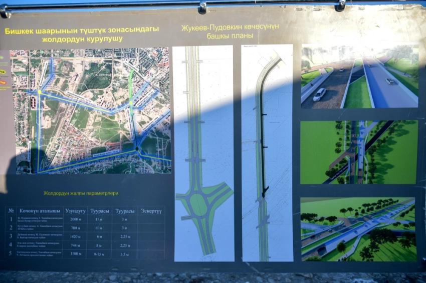 Чиновники, включая Айбека Джунушалиева, были проинформированы о ходе строительства участка улицы Жукеева-Пудовкина от А. Токомбаева до Иманалиева. В работах задействовано около 100 единиц специализированной техники.