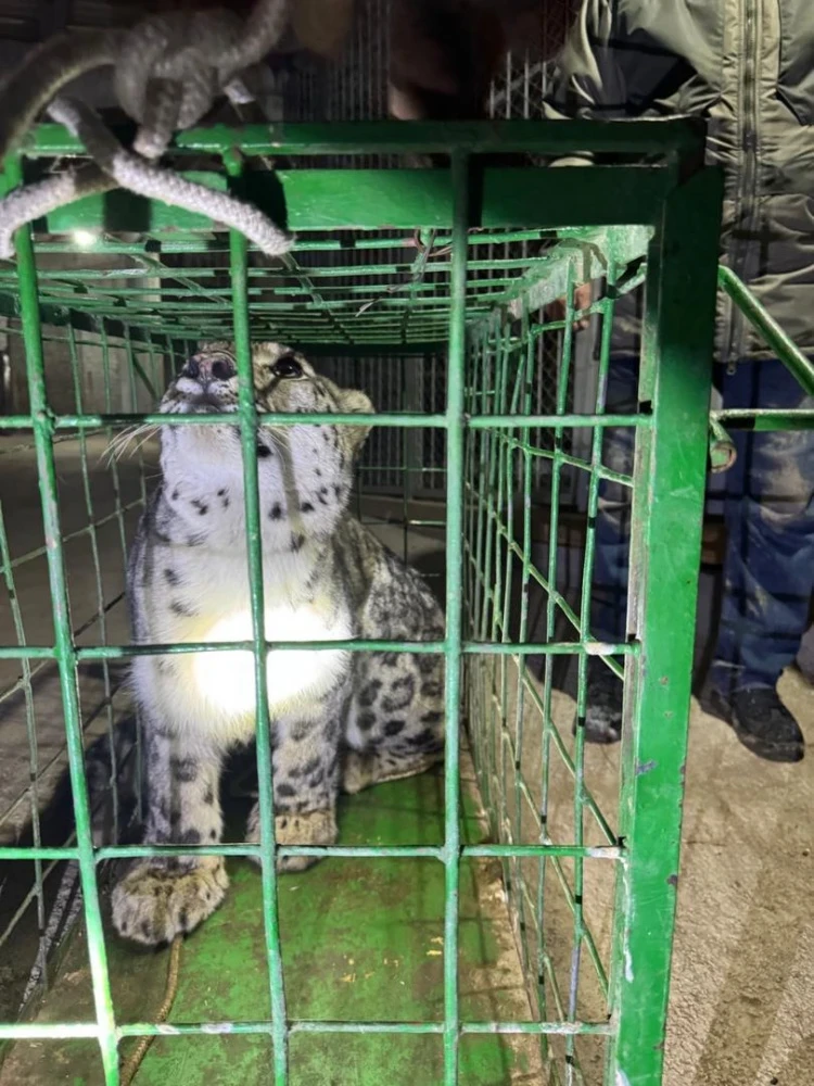 В Кеминском районе снежный барс спустился в село и застрял на дереве