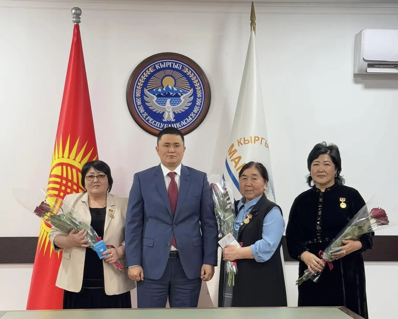 Нурдан Орунтаев вручил женщинам почетные знаки «Заслуженный строитель КР»